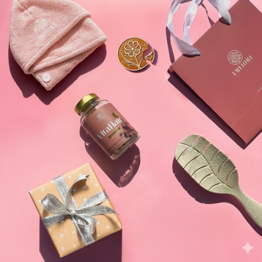 EMFIORE VITA HAIR Gift Set není jen jeden balíček. Je to začátek každodenní rutiny, která podpoří přirozený cyklus růstu vlasů. Pravidelným užíváním a správnou péčí dokážeš posílit vlasové kořínky, podpořit obnovu vlasového vlákna a vytvořit zdravější podmínky pro růst.